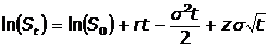 Thus, ln(S1) is normally distributed with mean ln(S0) + rt – s2t/2 and standard deviation s times the square root of t.