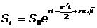 It makes sense that the expression for the mean would start from the value today, and include expected growth, but the ‑s2t/2 term calls for some explanation. The mean of the lognormal distribution of the price t years from now is given by