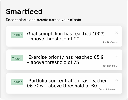 Create client-ready reports that summarize everything from vesting schedules to progress toward goals. These reports combine a range of metrics, all packaged in a format that’s digestible and actionable for you and your clients.